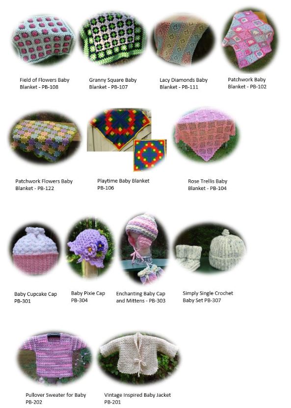 For more information or to purchase a pattern, please hover on the Patterns for Baby And Toddler pull-down under My Pattern Collections on the Main Menu. You will find patterns for baby blankets, clothing and accsessories.